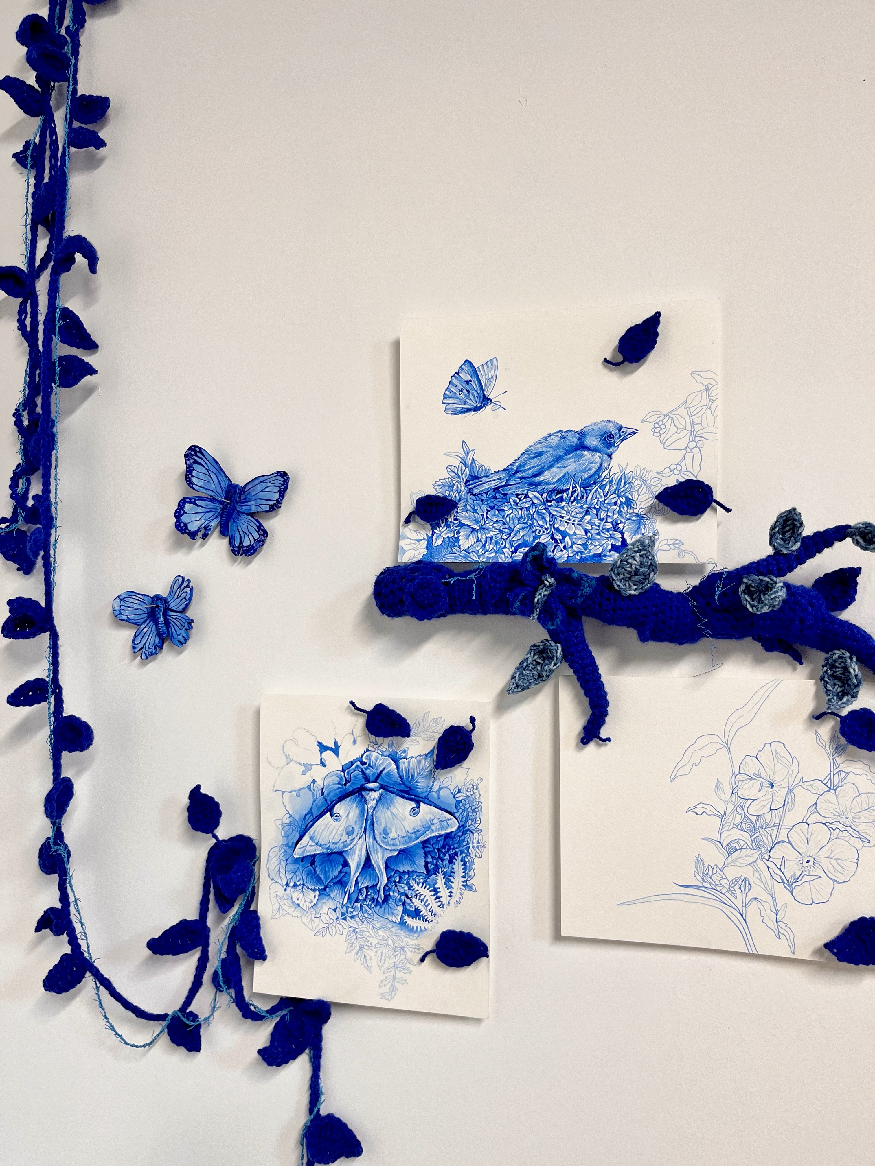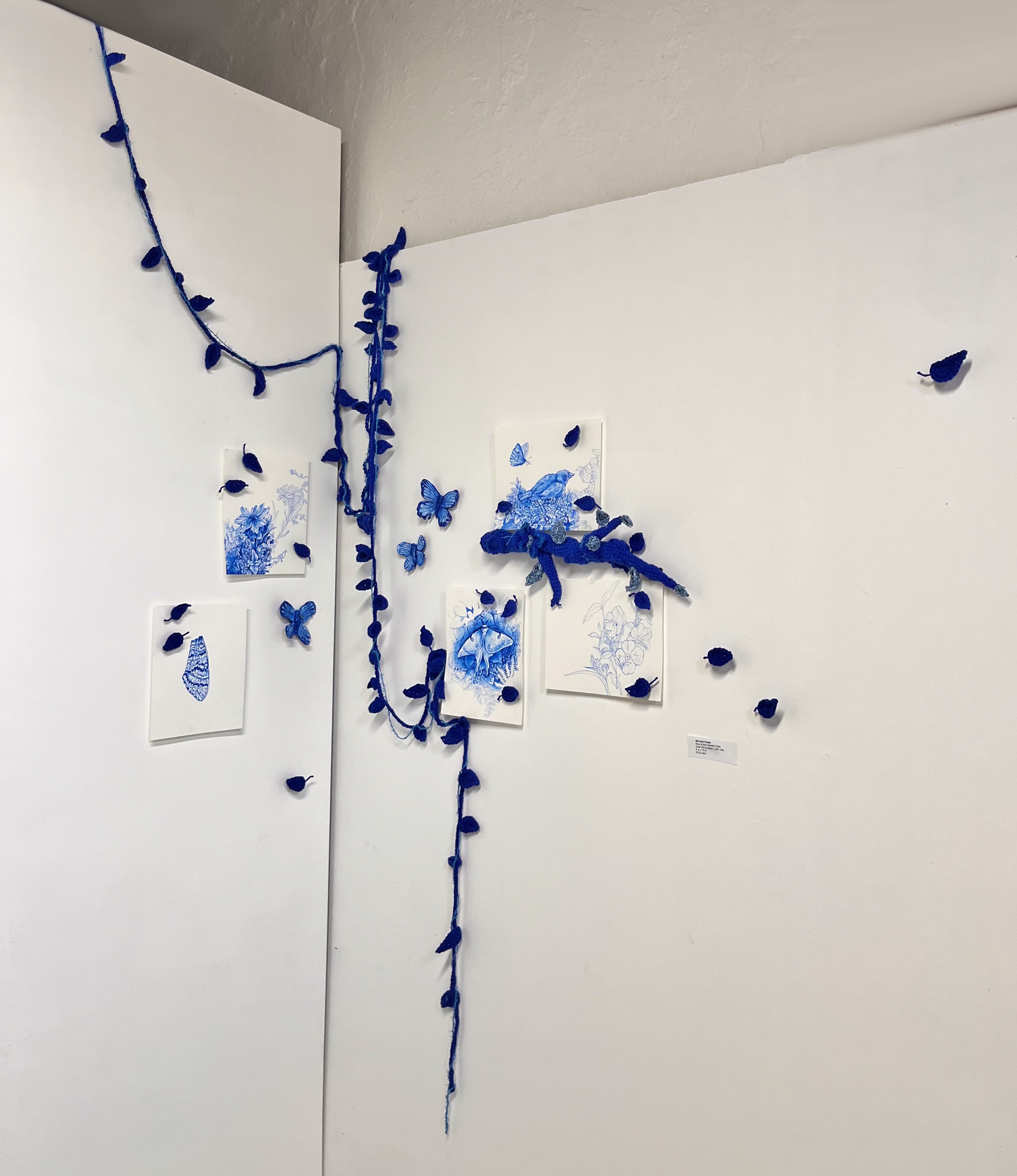 ed yarn, India ink on paper and air dry clay